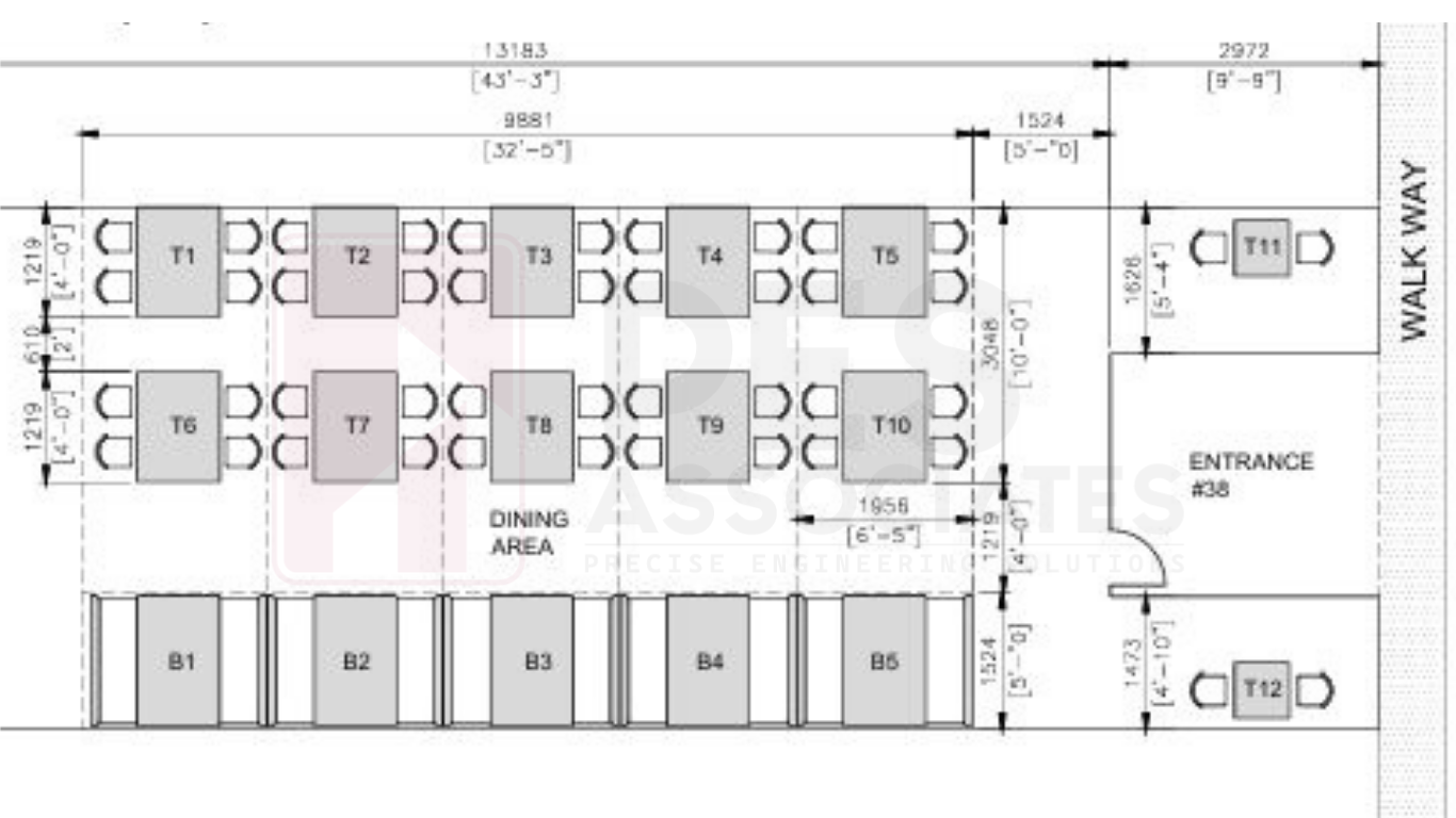 PES Associates provided full architectural and structural design support for the renovation and permit approval of a restaurant space, transforming it into a modern, efficient dining environment that complies with all municipal and building code requirements.